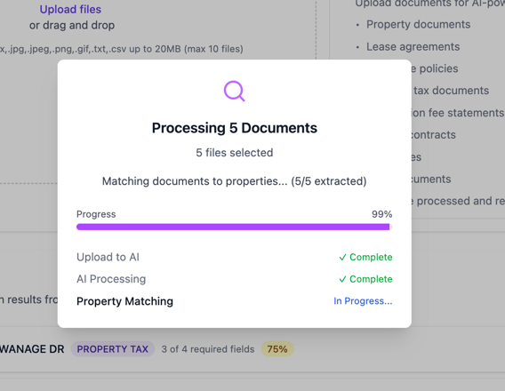 Each document is automatically associated with the correct property and stored for future reference. Review and approve them before they’re added to your account.