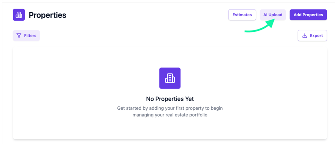 - Select the AI Upload option located in the top right corner of the Properties page: